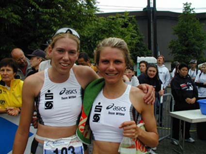 im Ziel mit Teamkollegin Wieke Hoogzad